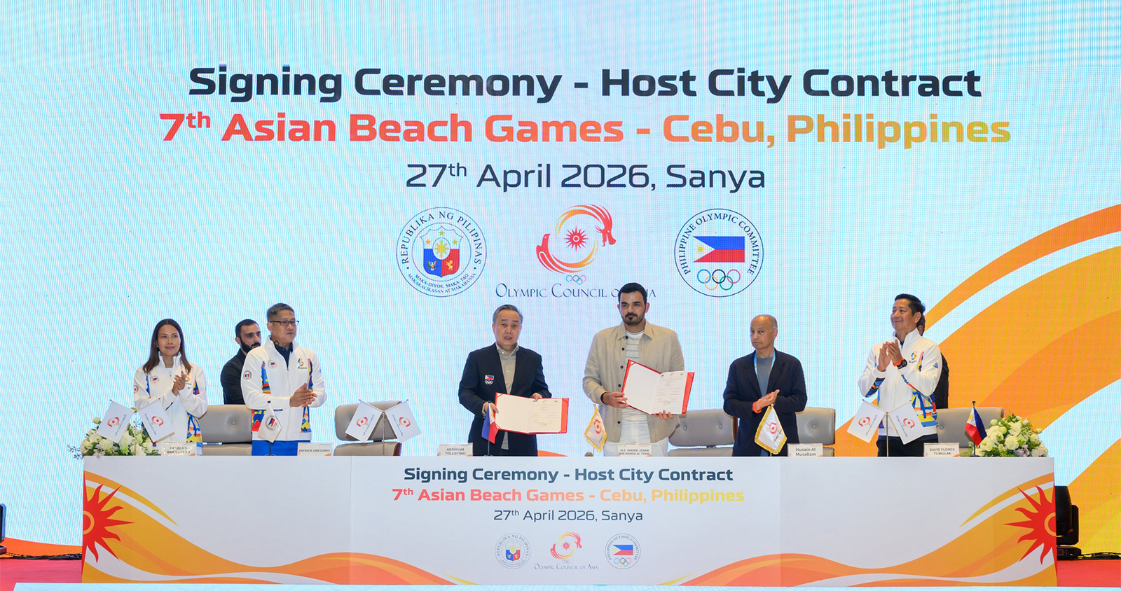 سانيا (الصين)/ قنا- وقع المجلس الأولمبي الآسيوي مع الحكومة الفلبينية واللجنة الأولمبية الفلبينية رسميا اتفاقية استضافة دورة الألعاب الآسيوية الشاطئية السابعة (سيبو 2028)، وذلك خلال حفل أقيم في مدينة سانيا بجمهورية الصين الشعبية على هامش دورة الألعاب الآسيوية الشاطئية السادسة.