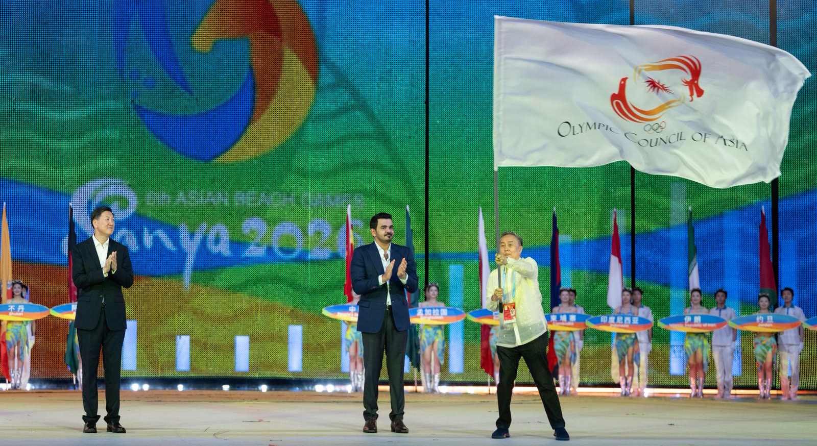 وشهد الحفل مراسم تسليم علم المجلس الأولمبي الآسيوي، حيث قام عمدة مدينة سانيا بتسليم العلم إلى رئيس اللجنة الأولمبية الصينية، الذي سلّمه بدوره إلى سعادة الشيخ جوعان بن حمد آل ثاني، قبل أن يقدّمه سعادته إلى أبراهام تولينتينو، إيذانًا بانتقال الراية إلى مدينة سيبو التي ستستضيف النسخة المقبلة في مارس 2028.